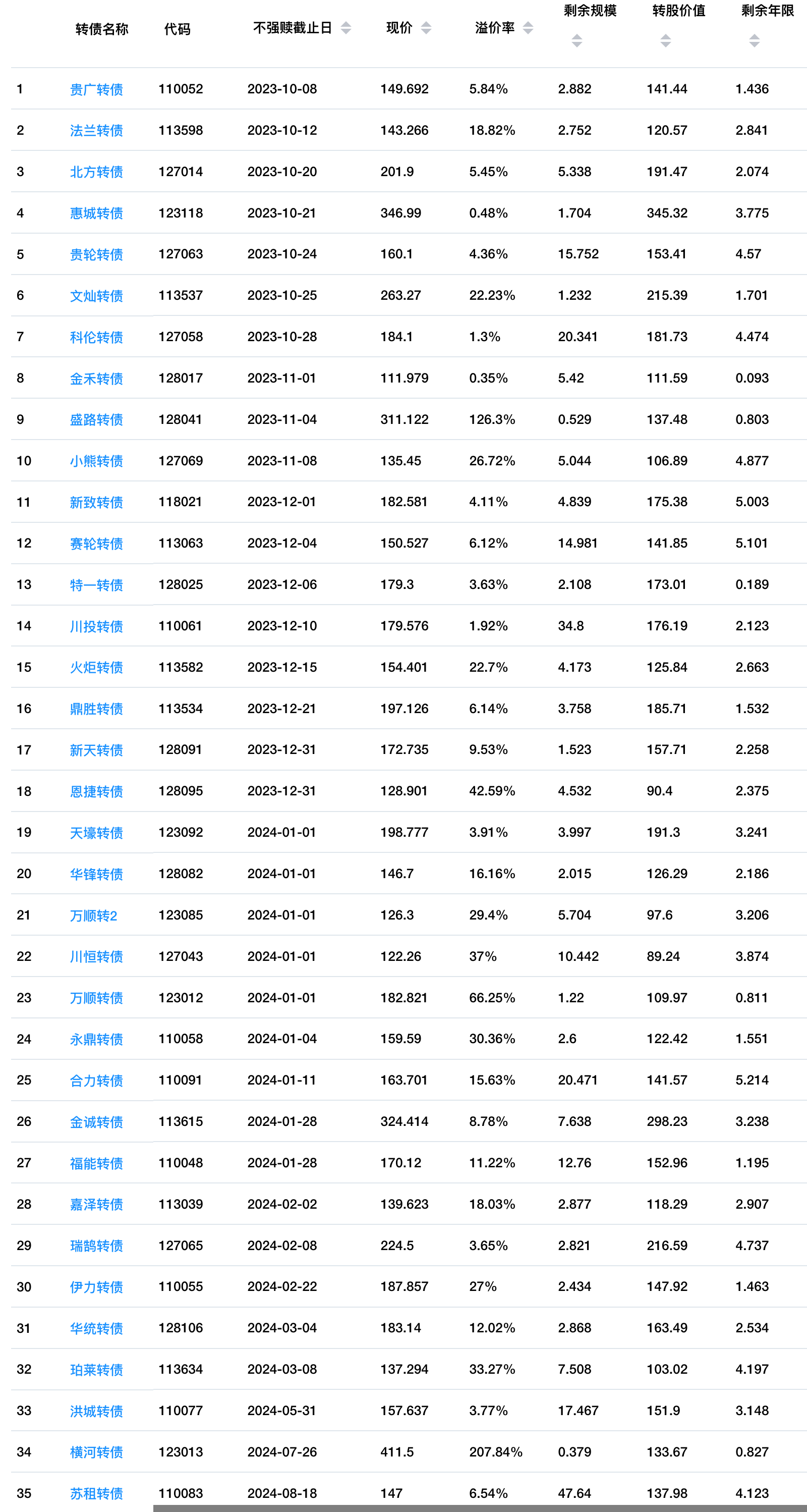 贵广转债、法兰转债、北方转债等即将开始强赎计数,需要注意强赎风险。