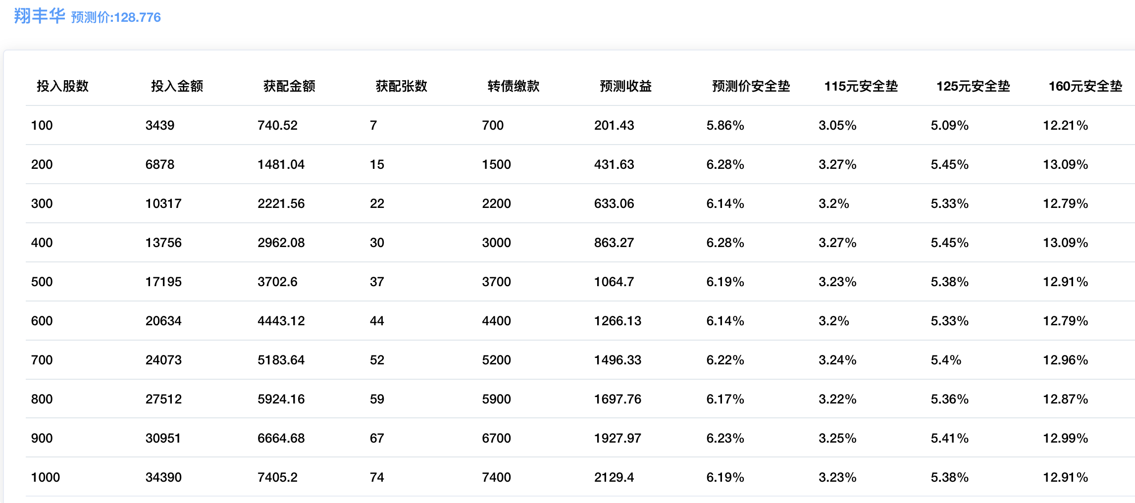 翔丰华配债所需股数和配债安全垫可以参考下图,安全垫尚可。