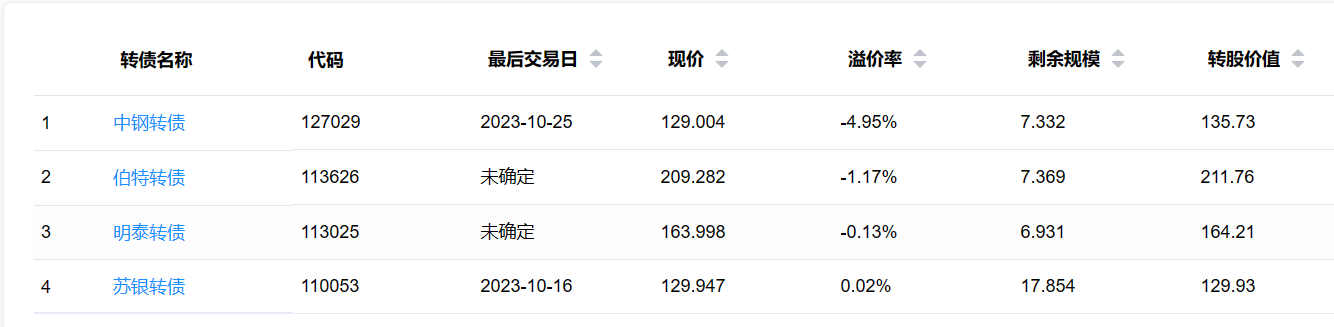 3、奕瑞转债,提议下修。无主动下修记录。目前转债价格120.86元,转股价值64.02元,溢价率88.77%,剩余规模14.35亿,剩余年限5.044年。