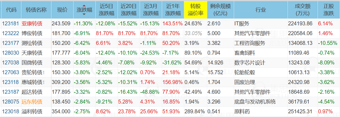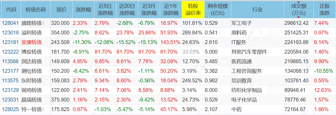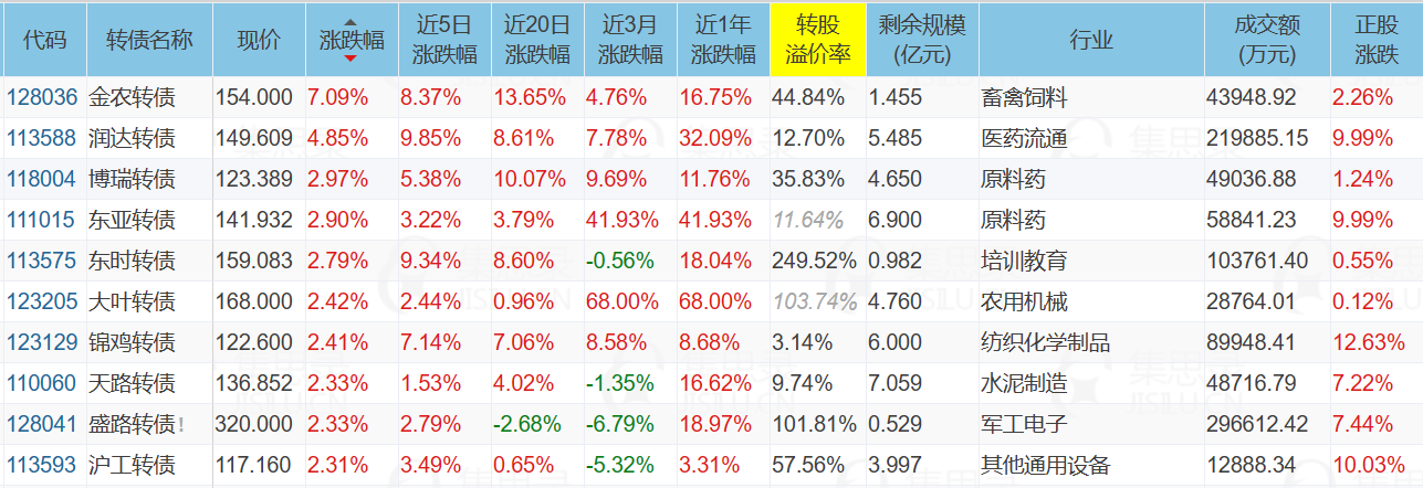 金农转债,今天荣获涨幅榜第一,剩余年限已经不足半年,溢价率高达44.84%,风险极高,随时有杀溢价的风险。