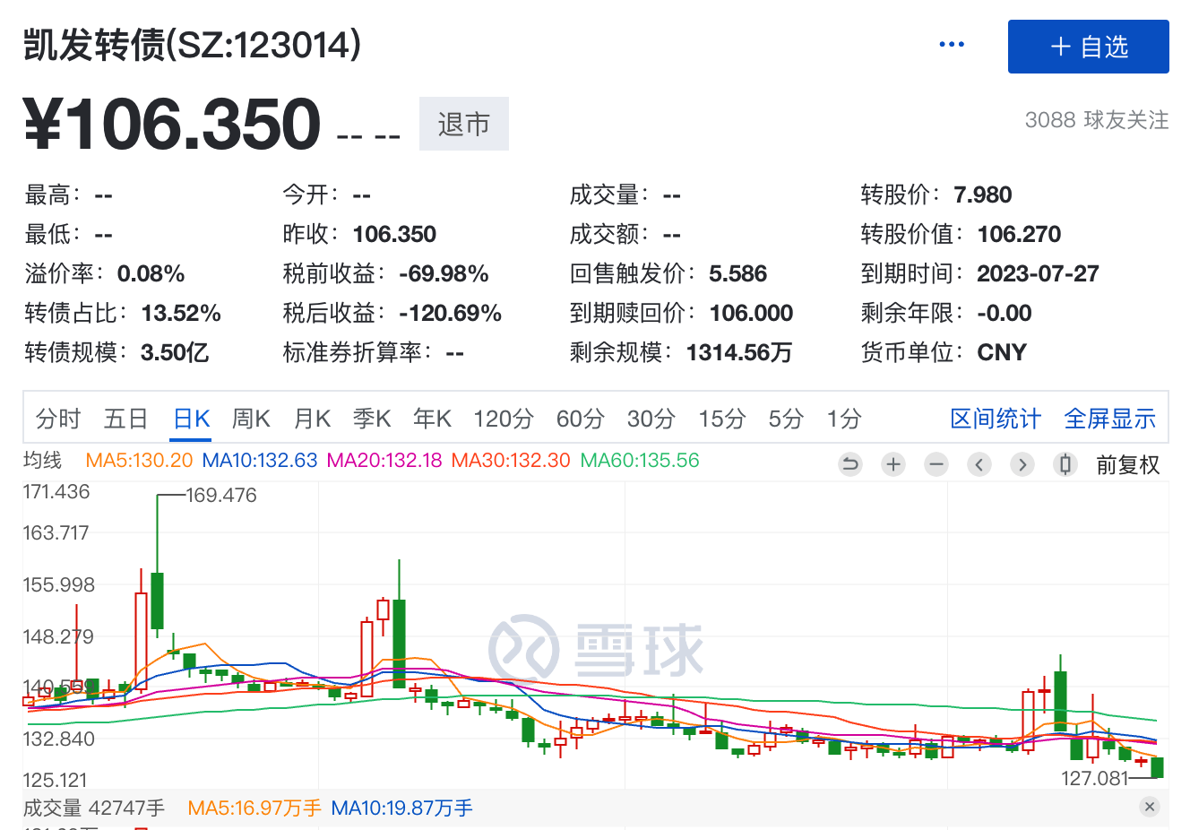 可以参考凯发转债,2023-07-27到期,在剩余年限0.304年(2023-04-07)时,剩余规模1.16亿,顶着45.47%的溢价率上涨到了151.2元,两天后最高上涨到159.7元。在剩余年限只有0.134年(2023-06-08)时,顶着17.11%的溢价率脉冲到最高价140.51元,两天后最高上涨到145.497元。