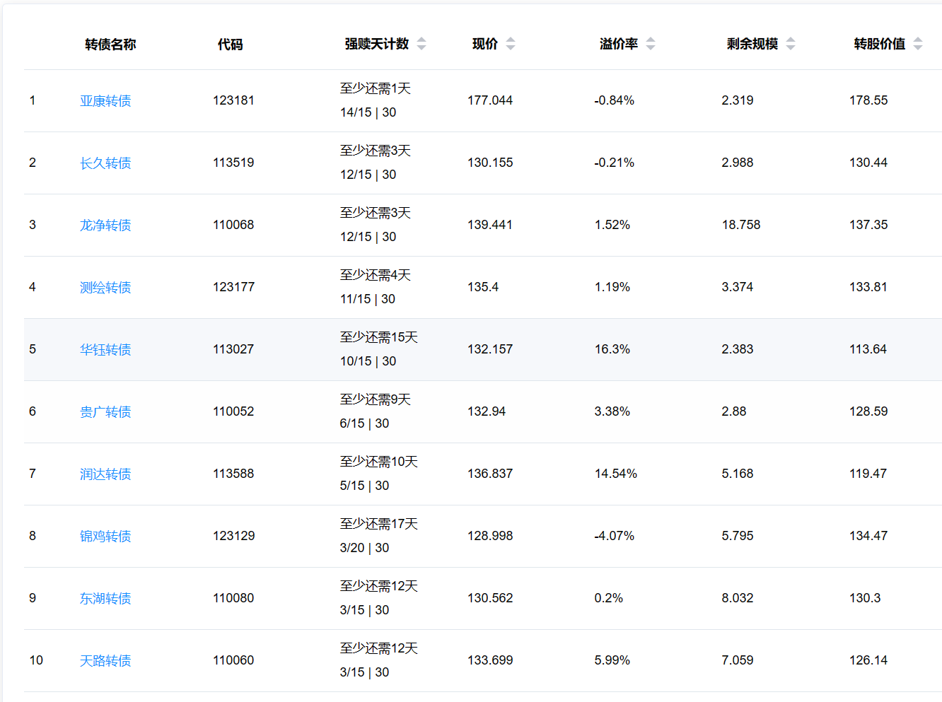 下面这些转债,要注意强赎杀溢价风险,尤其是溢价率在5%以上的。