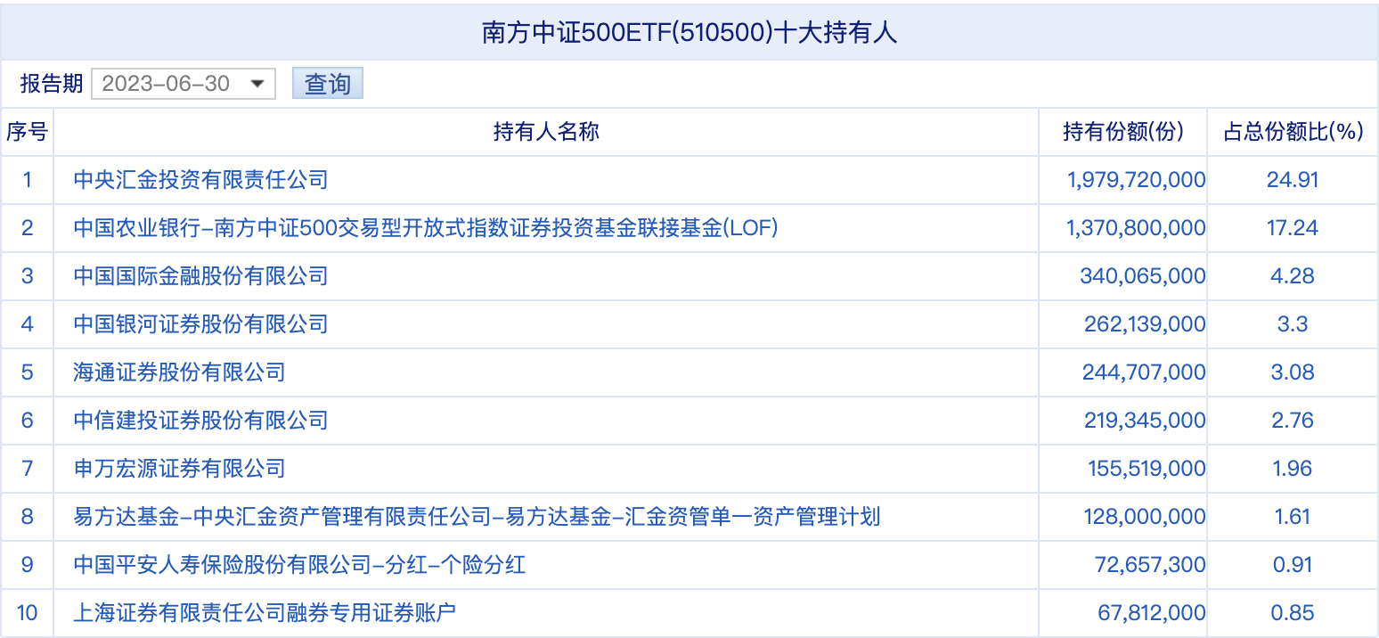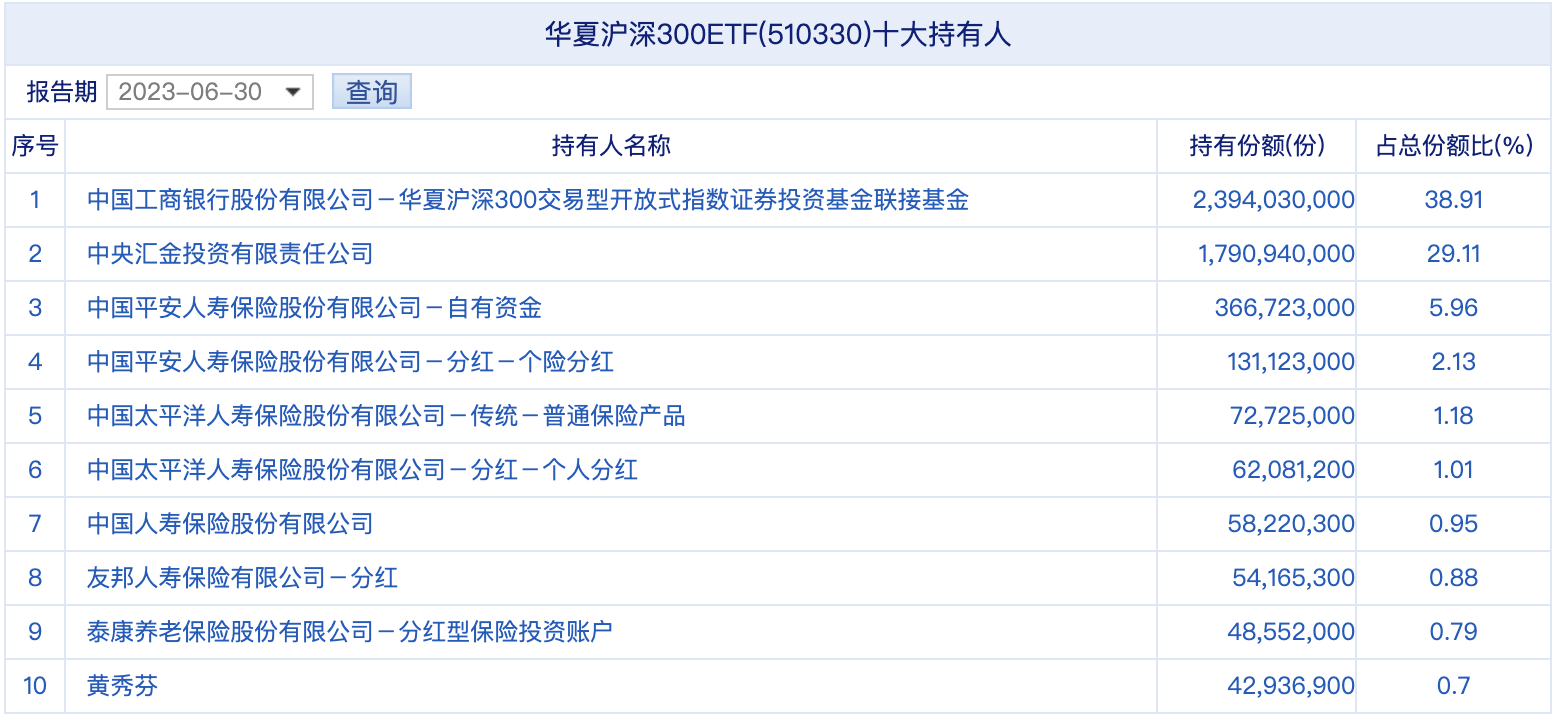 我查了一下,截止到2023-06-30,中央汇金已经是这几只基金的最大持有人或者第二大持有人。