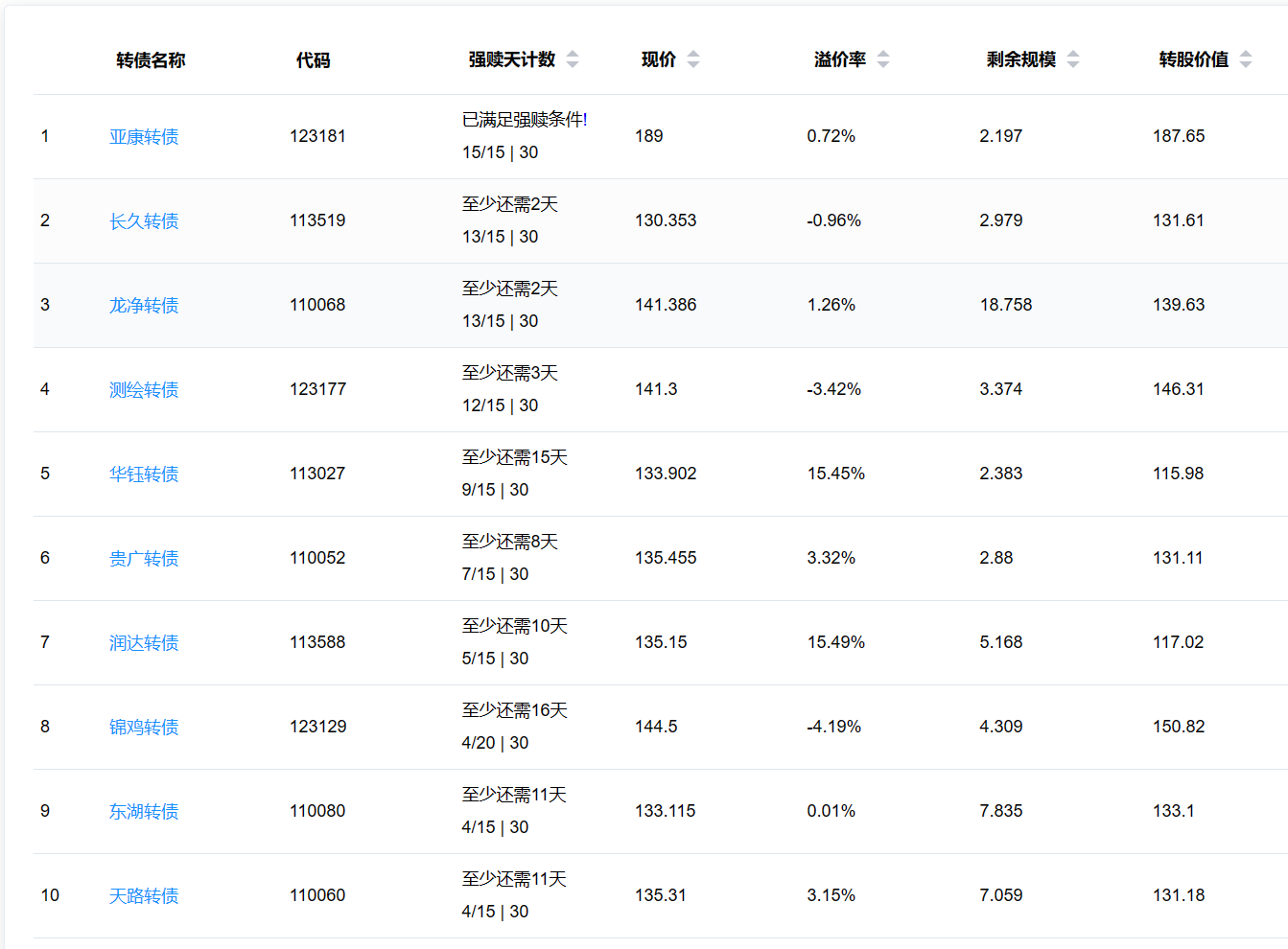 2、即将满足强赎转债