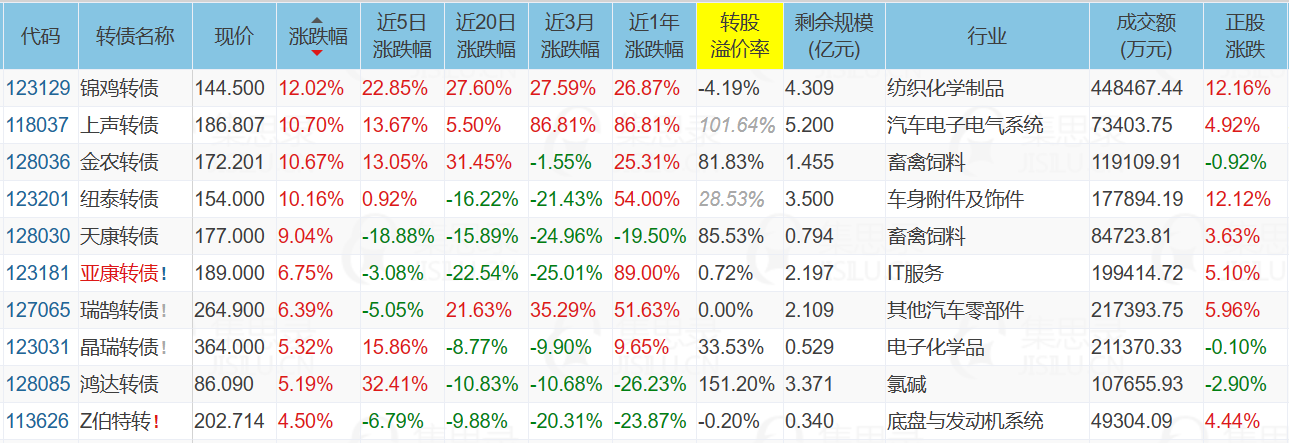 近期涨幅榜最靓的两个仔,一个是鸿达转债,一个是锦鸡转债。
