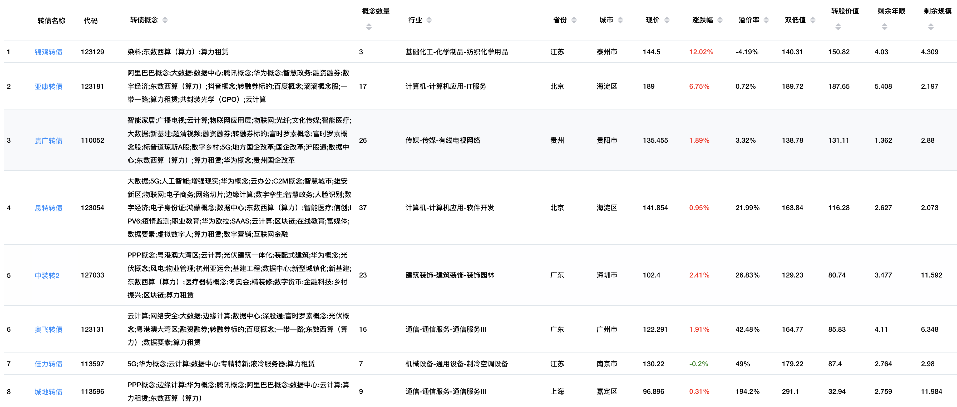 1、涨幅榜前十