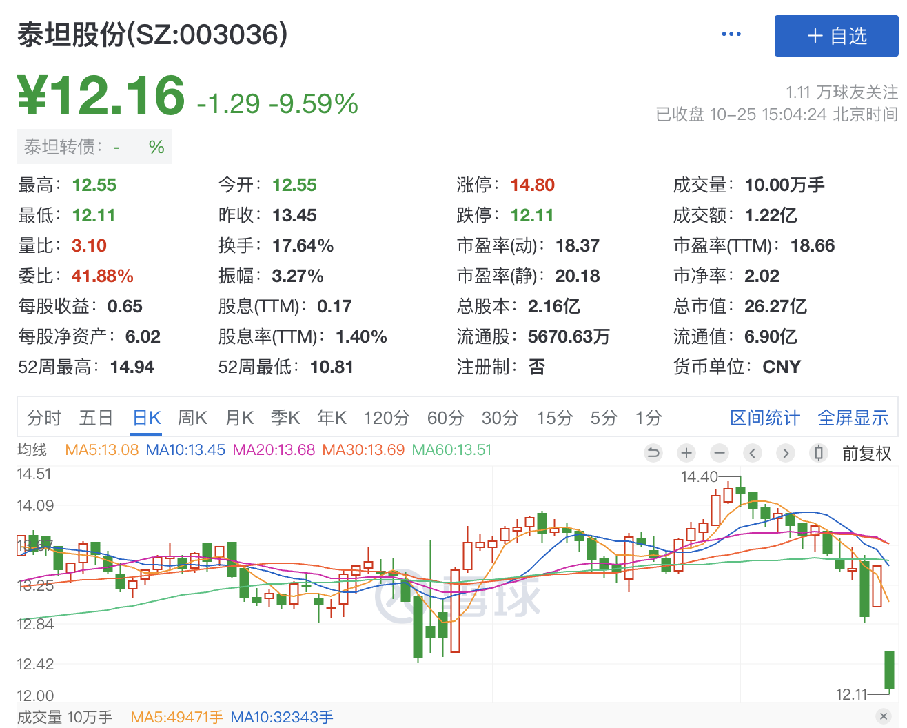 12.14元抄底了1%仓位的泰坦股份,泰坦股份未参与配债,但是套利党直接砸跌停这是我没想到的,直接砸下来一个大缺口。近期发行小盘债的红墙股份和山东章鼓也是类似的情况。可以看下图。