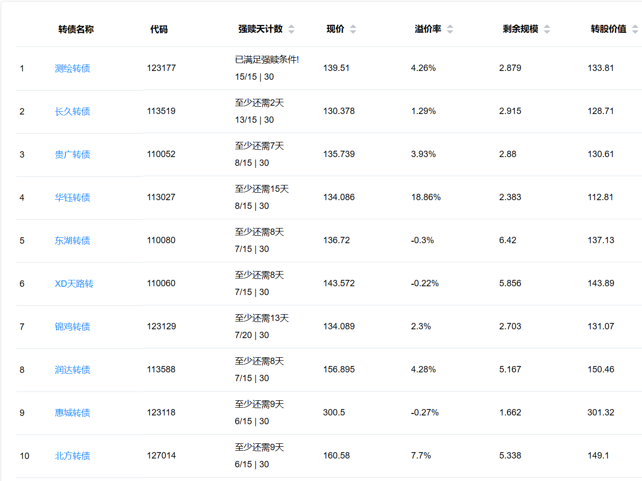 下面这些转债,要注意强赎杀溢价风险,尤其是溢价率在5%以上的。
