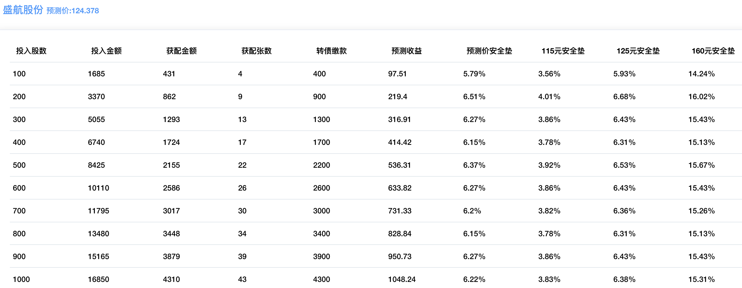 以125元来预测上市价,配债安全垫6%+不低,性价比不错。
