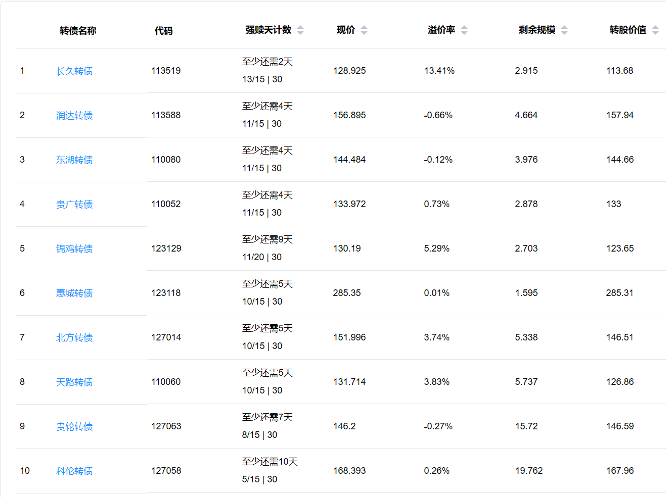 下面这些转债,要注意强赎杀溢价风险,尤其是溢价率在5%以上的。