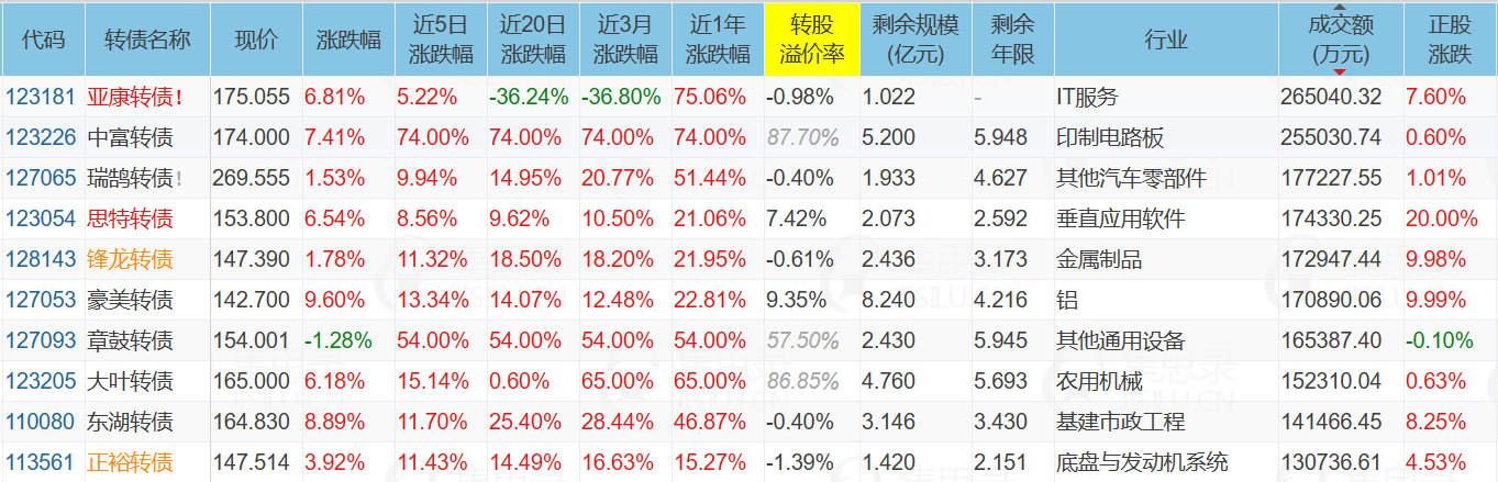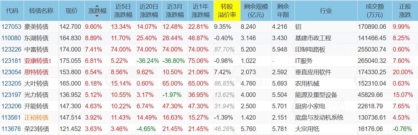 1、涨幅榜前十