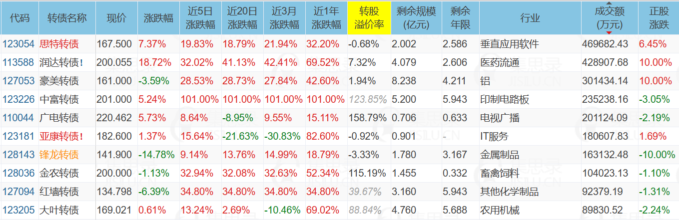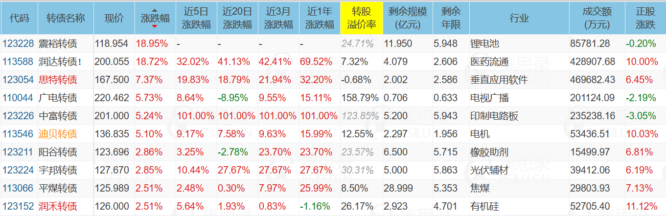润达转债,公告未来6个月不强赎。当前200.055元,溢价率7.32%,剩余规模4.066亿。正股近期表现强势,仅15个交易日,润达转债就从130元冲到200元,由于有回调预期,个人认为溢价率在10%以内比较合理。