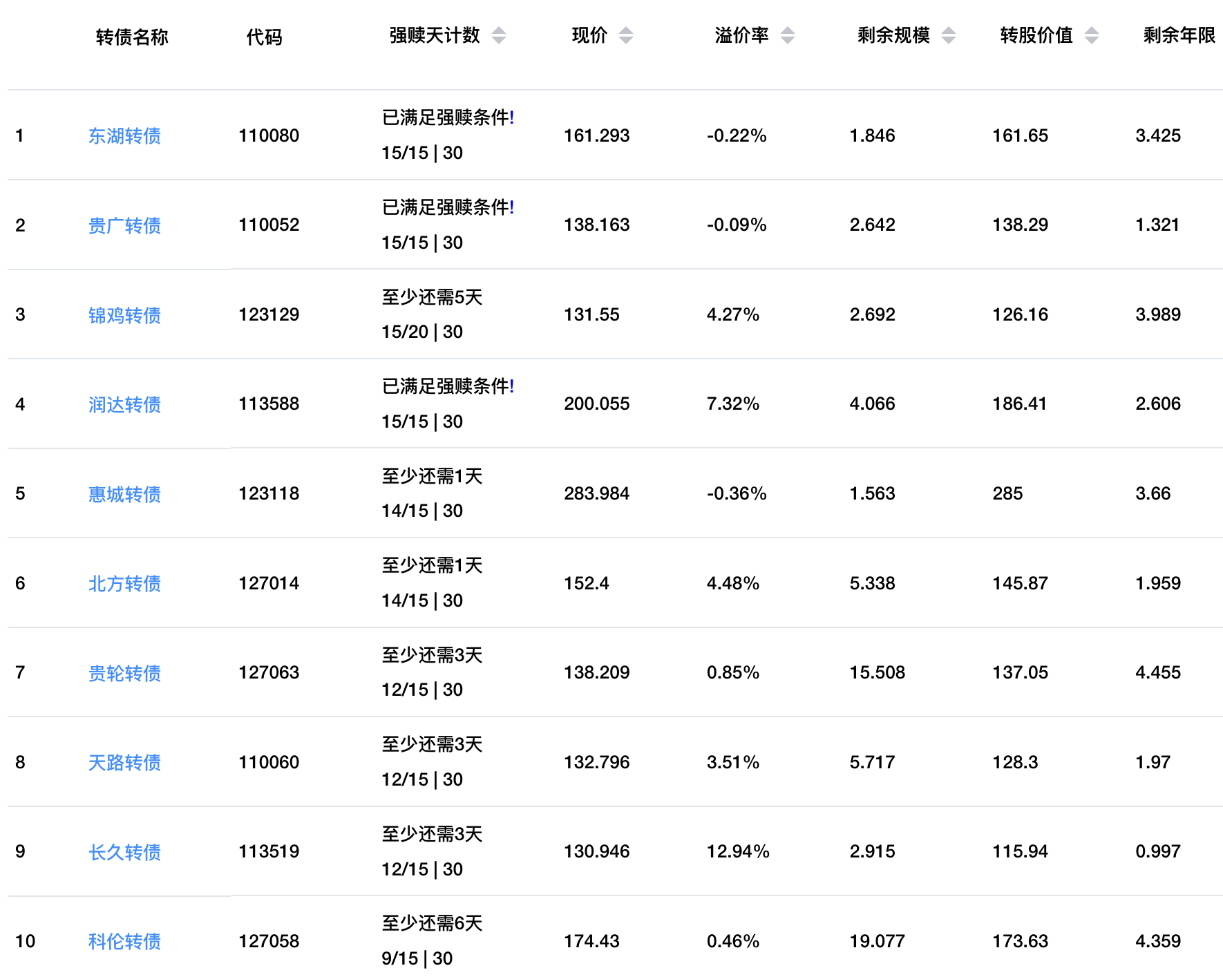 下面这些转债,要注意强赎杀溢价风险,尤其是溢价率在5%以上的。