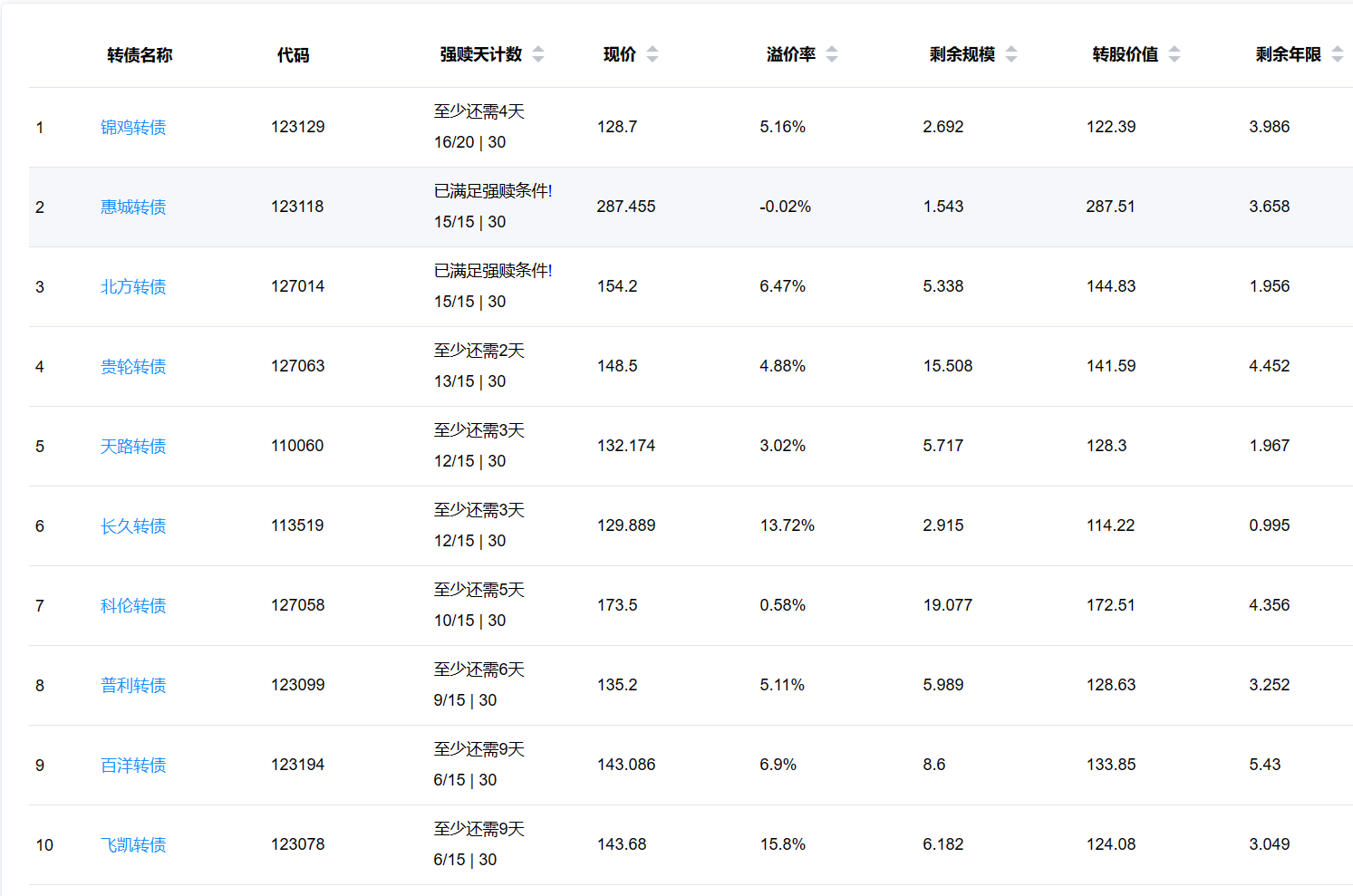 下面这些转债,要注意强赎杀溢价风险,尤其是溢价率在5%以上的。
