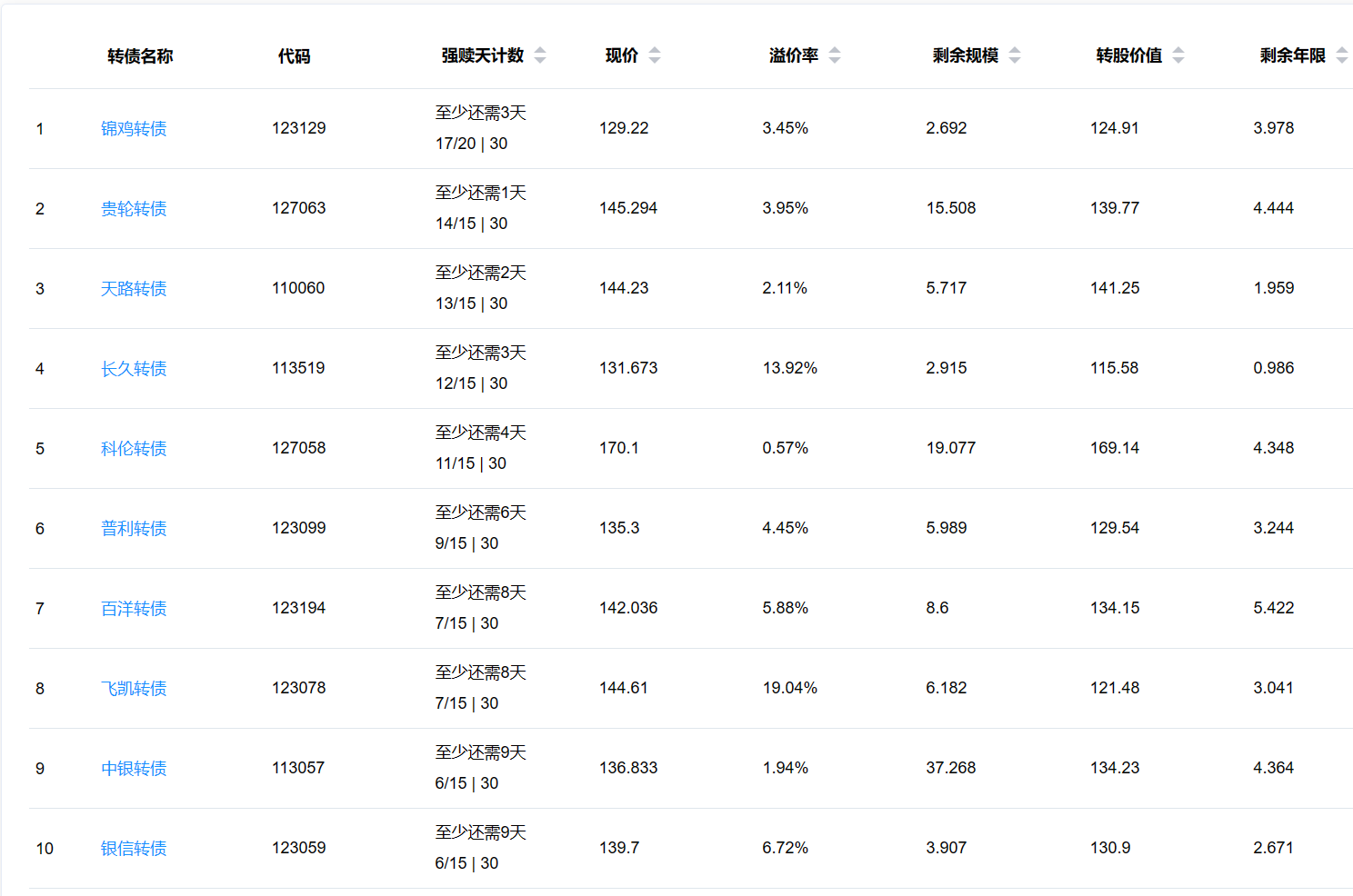2、即将满足强赎转债