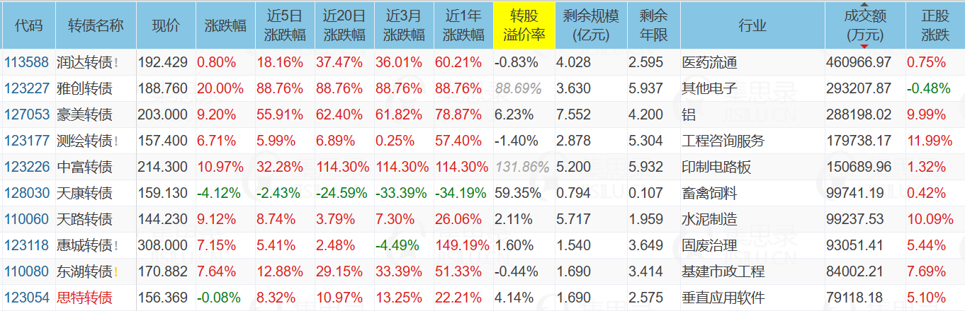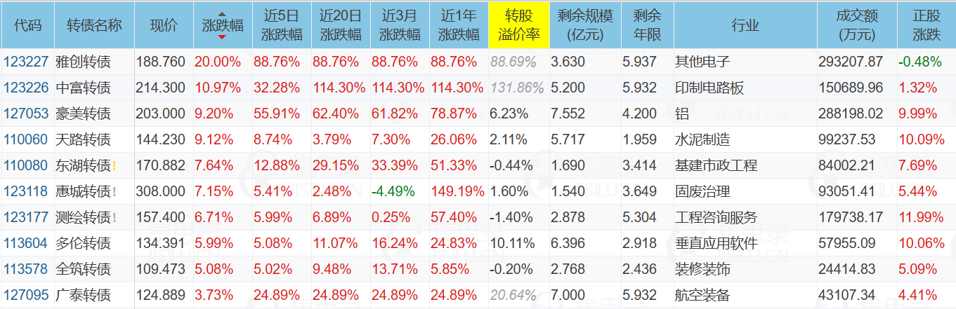 1)今天两只次新债:雅创转债走出V字,收盘再度涨停,达到188.76元;中富转债继续冲高,已经冲上210元。