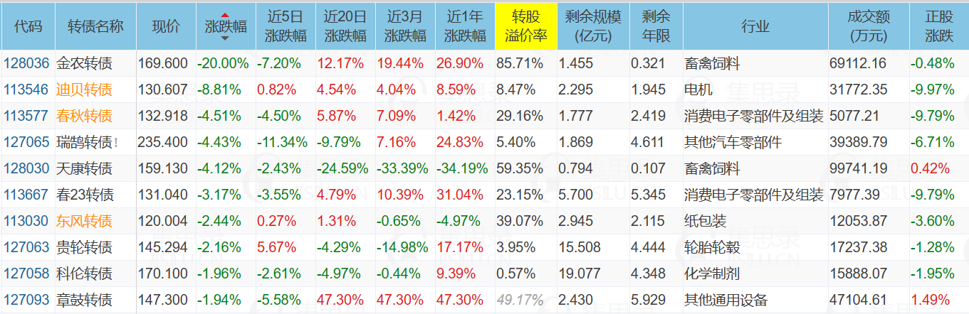 临期双高债金农转债20%跌停,我在10-30的文章曾经提示过它风险很大:韭菜是割不完的,但我希望你别被割,并且它当前溢价依然很高,未来大概率会继续跌停。