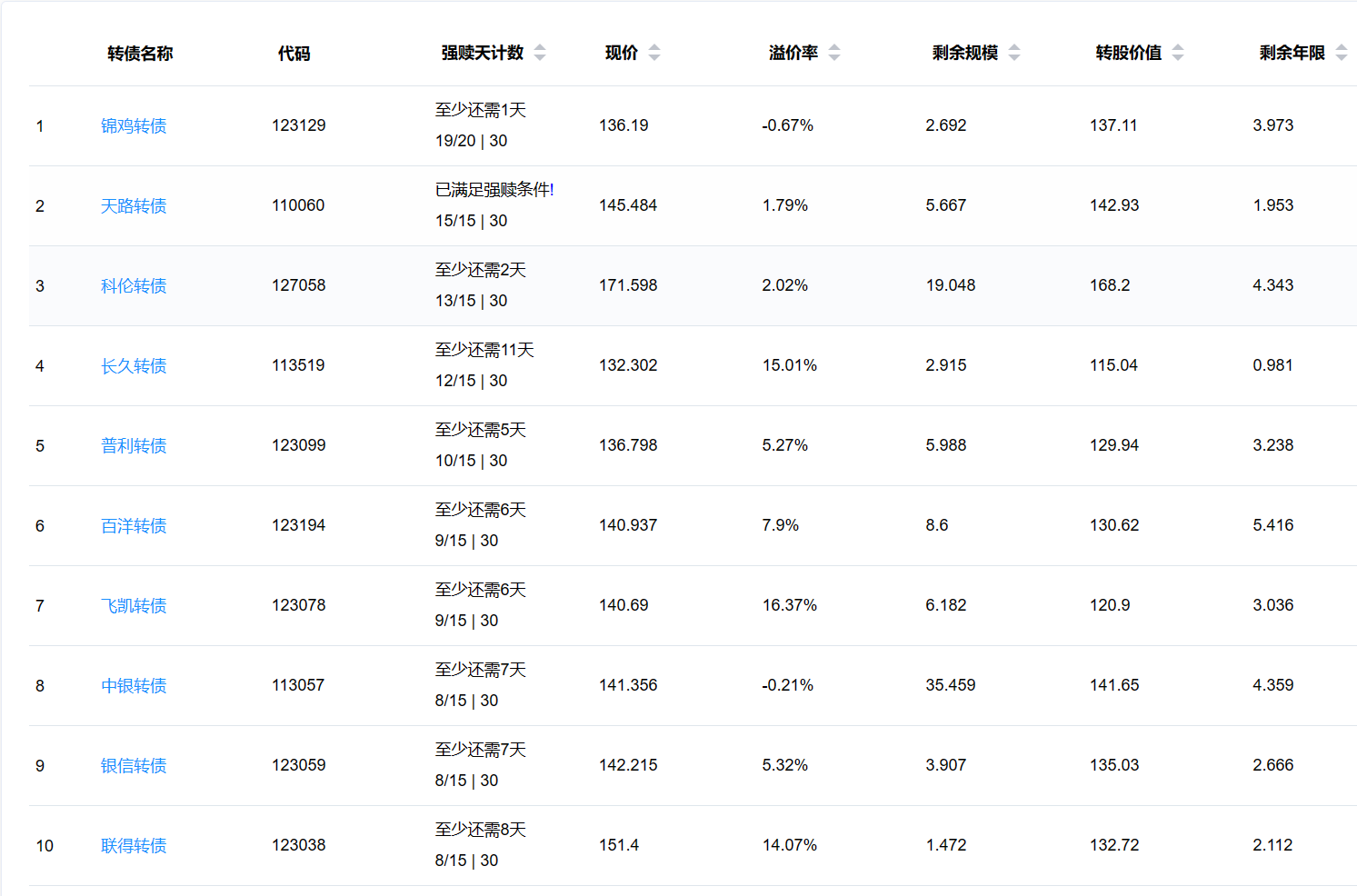 下面这些转债,要注意强赎杀溢价风险,尤其是溢价率在5%以上的。