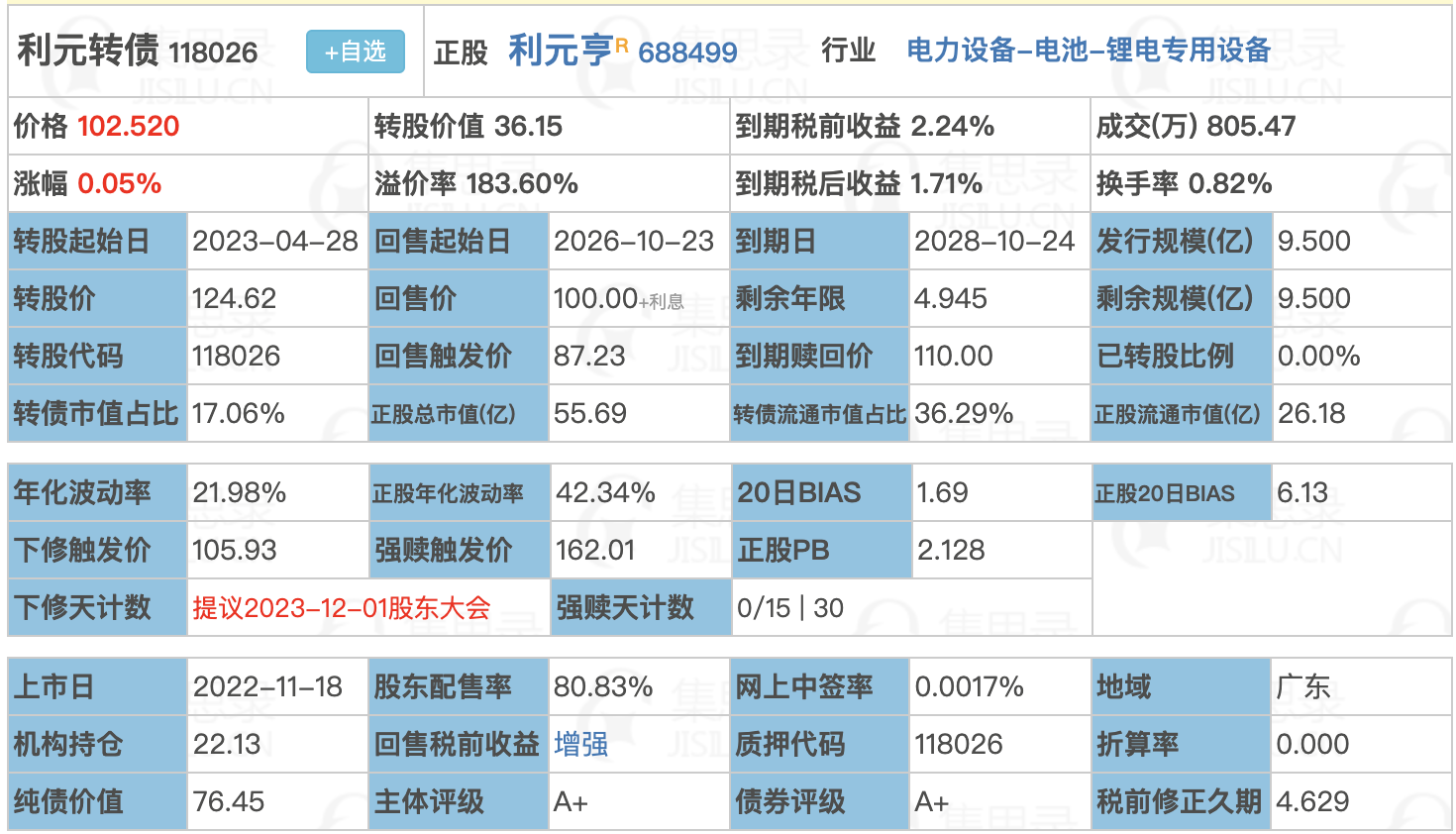 给予35%-37%的溢价率,116-118元比较合理。不过正股有光伏概念,最近在反弹阶段,可以高看一眼。