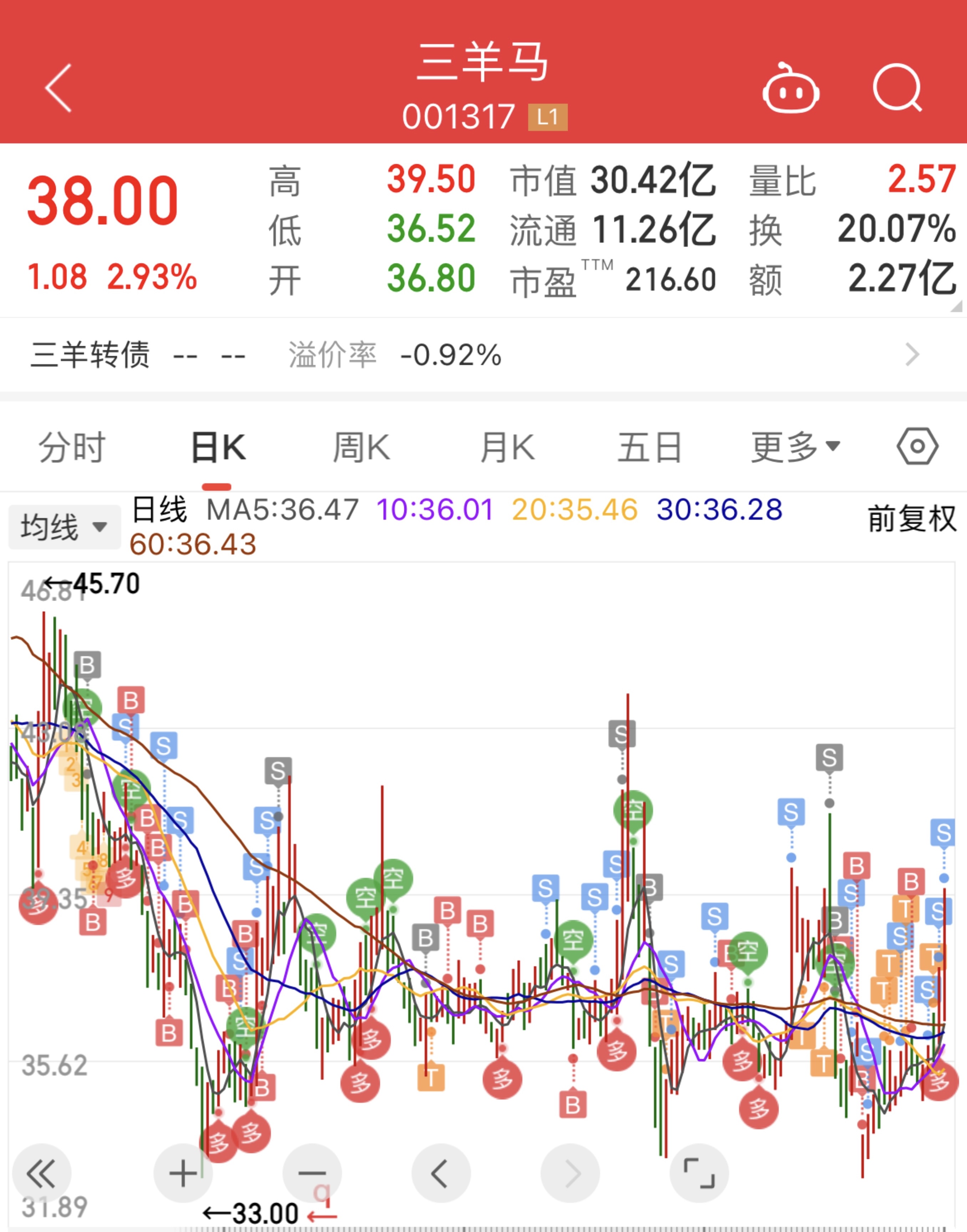 1、三羊马,38.78卖出一网。
