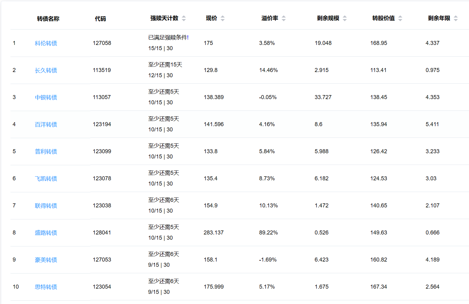 下面这些转债,要注意强赎杀溢价风险,尤其是溢价率在5%以上的。