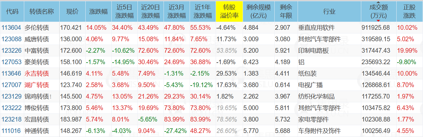 6、湖广转债,今天正股涨停又开板,转债最近涨幅不小,应该是受抖音测试付费短视频消息刺激,但是需要提醒的一点是湖广转债还有半年左右就要到期了,临期债不配这么高的溢价,持有的话要注意风险。