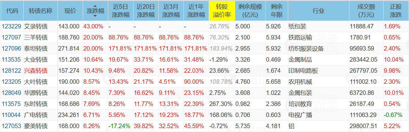 1、涨幅榜前十