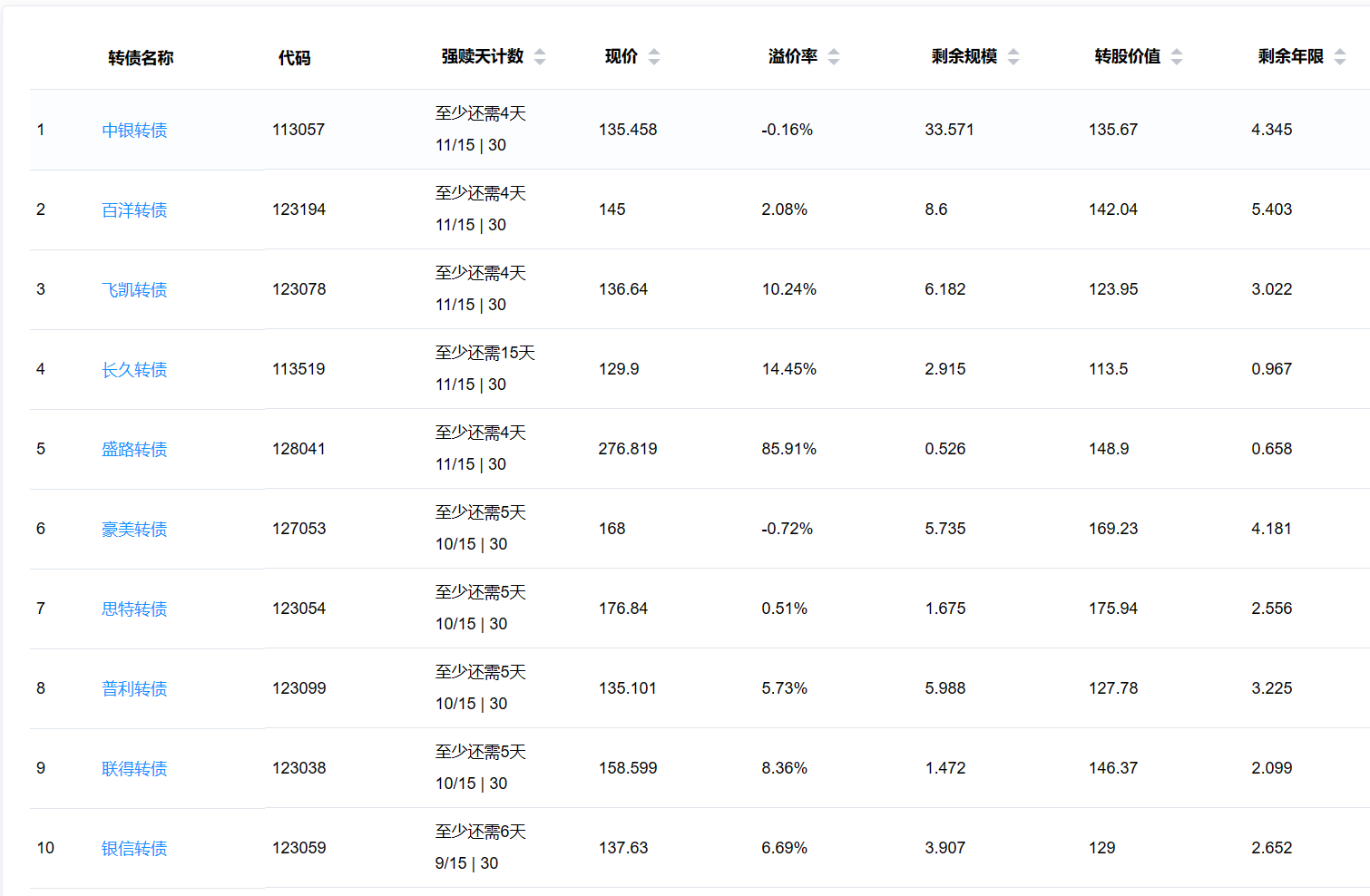 2、即将满足强赎转债
