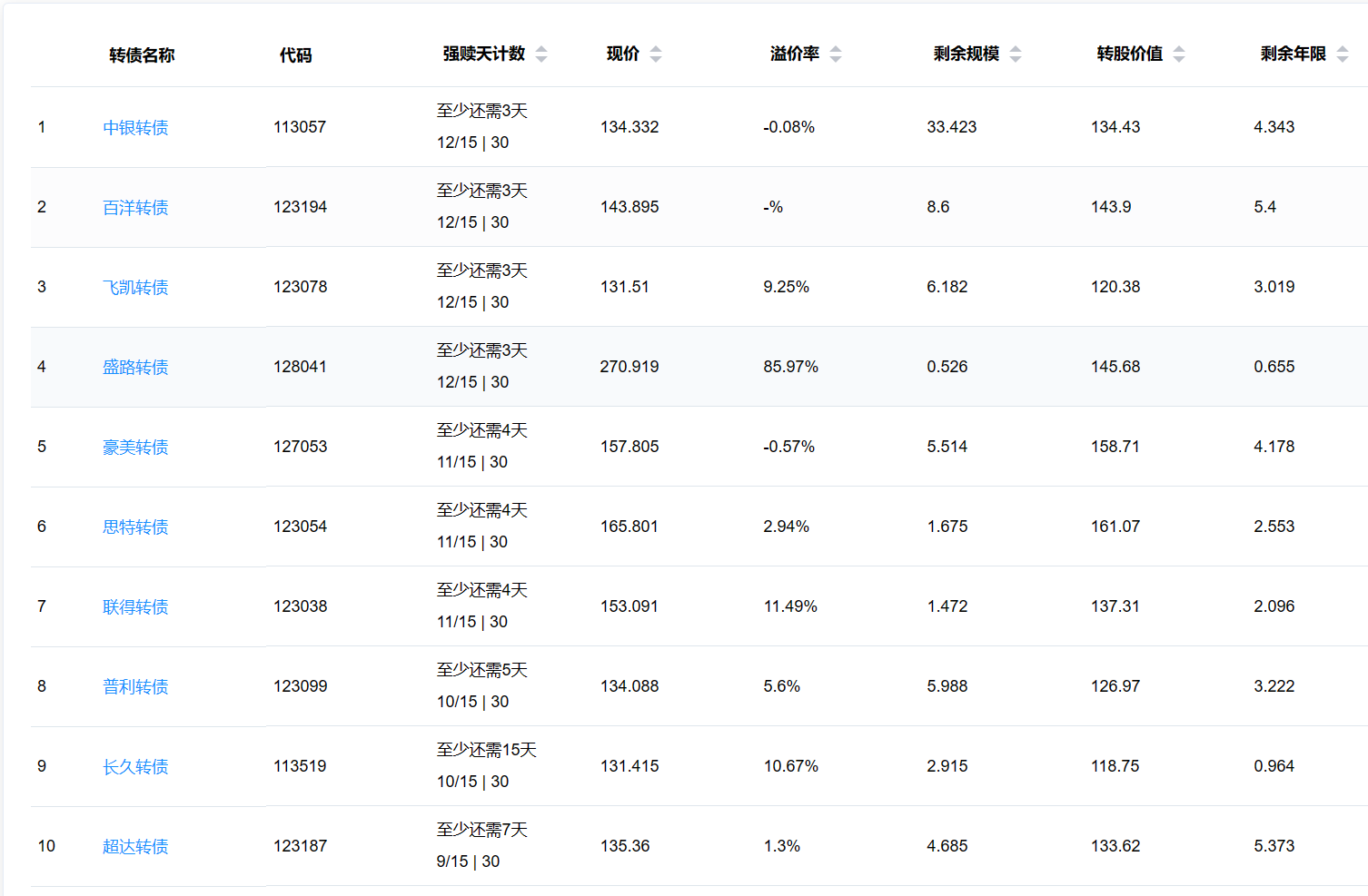 2、即将满足强赎转债
