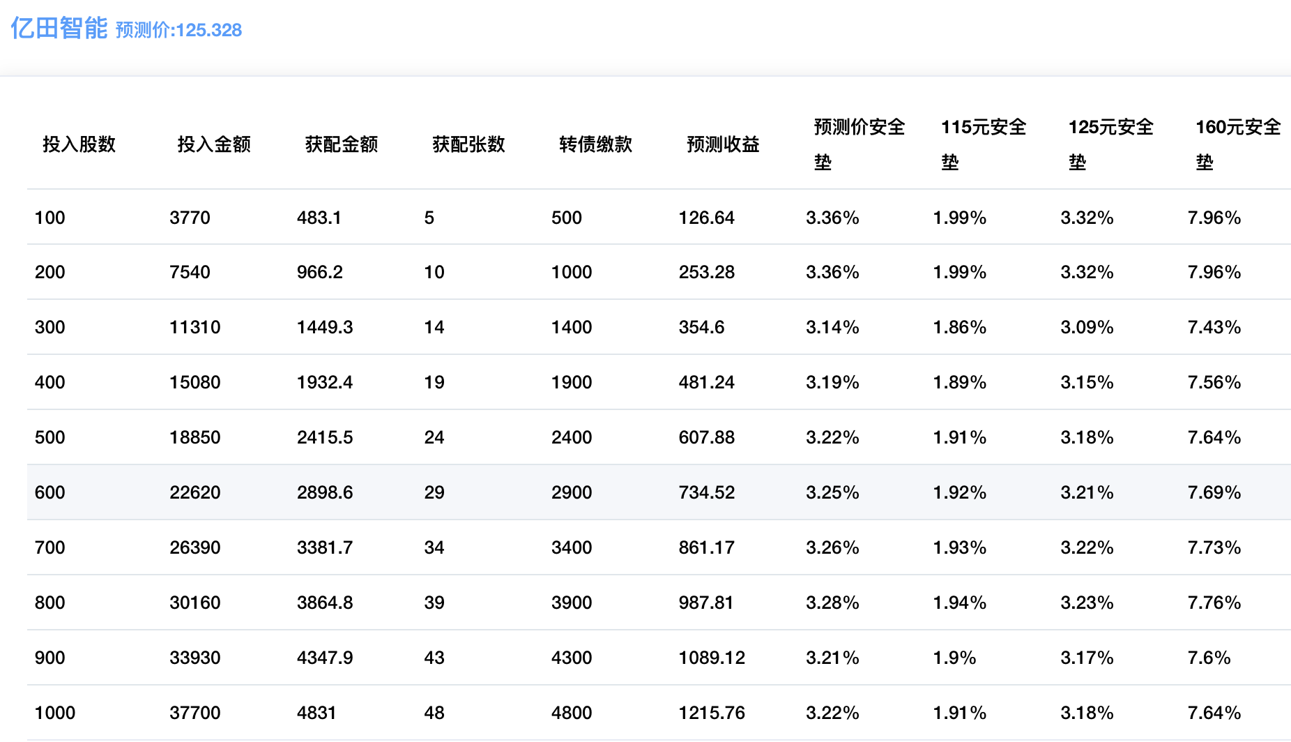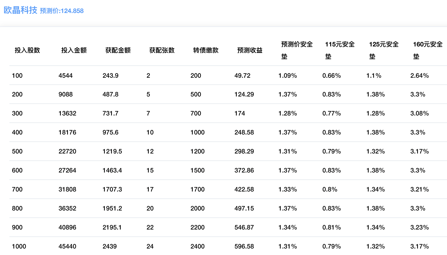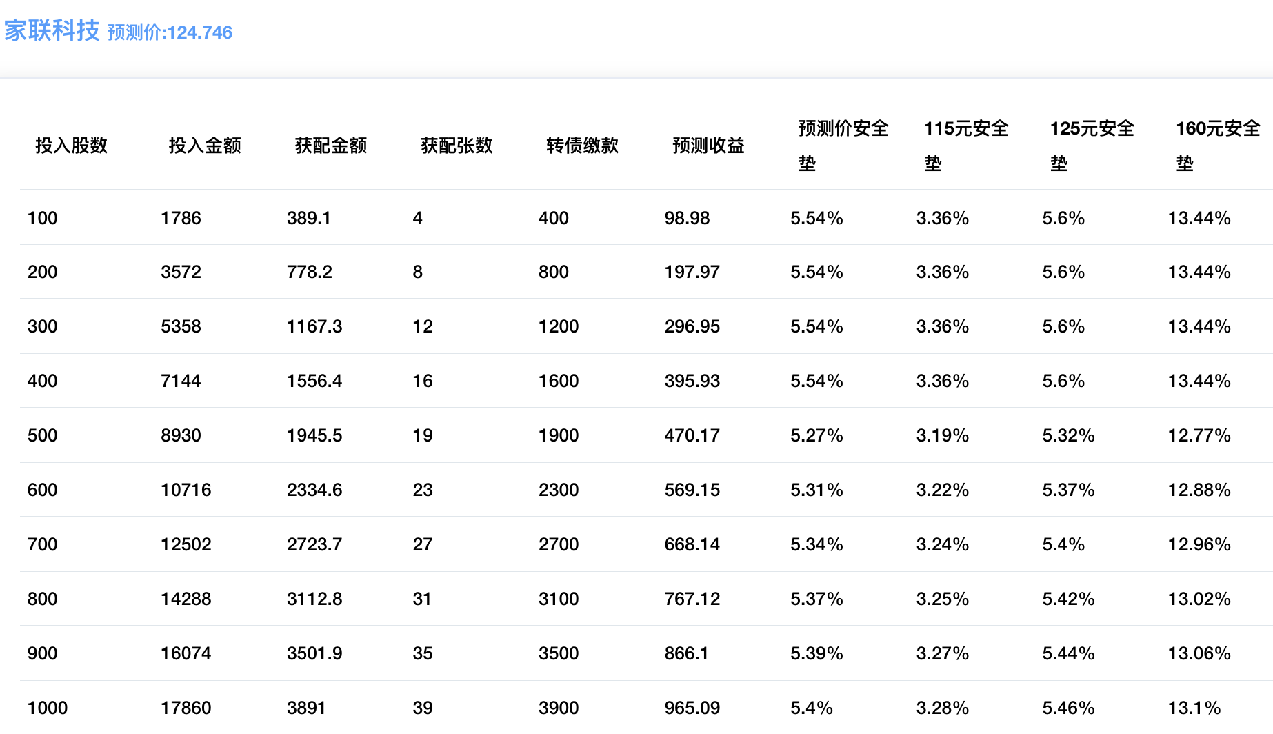 配债所需股数和安全垫可以参考下图: