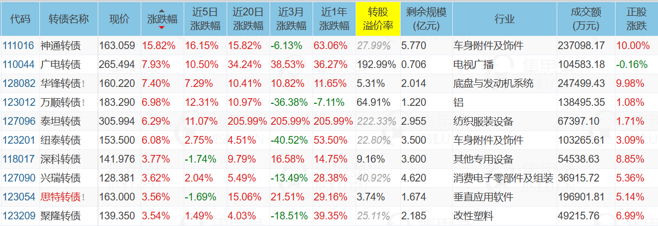 1、涨幅榜前十