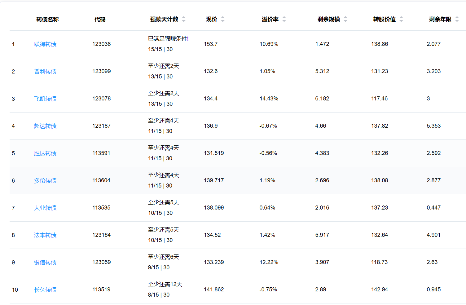 2、即将满足强赎转债
