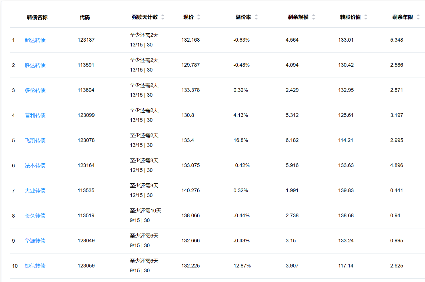 下面这些转债,要注意强赎杀溢价风险,尤其是溢价率在5%以上的。