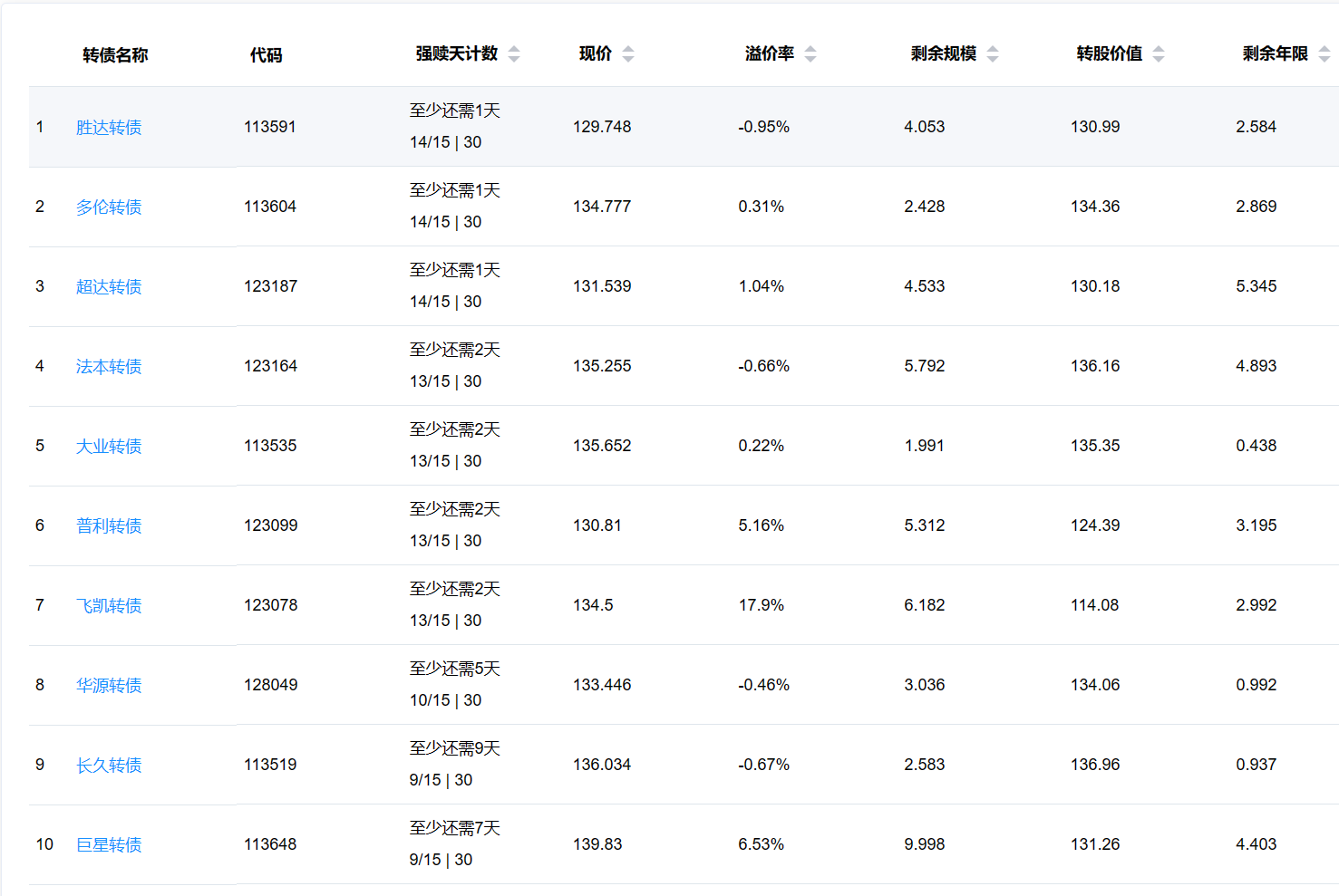下面这些转债,要注意强赎杀溢价风险,尤其是溢价率在5%以上的。