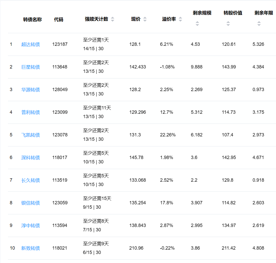 下面这些转债,要注意强赎杀溢价风险,尤其是溢价率在5%以上的。