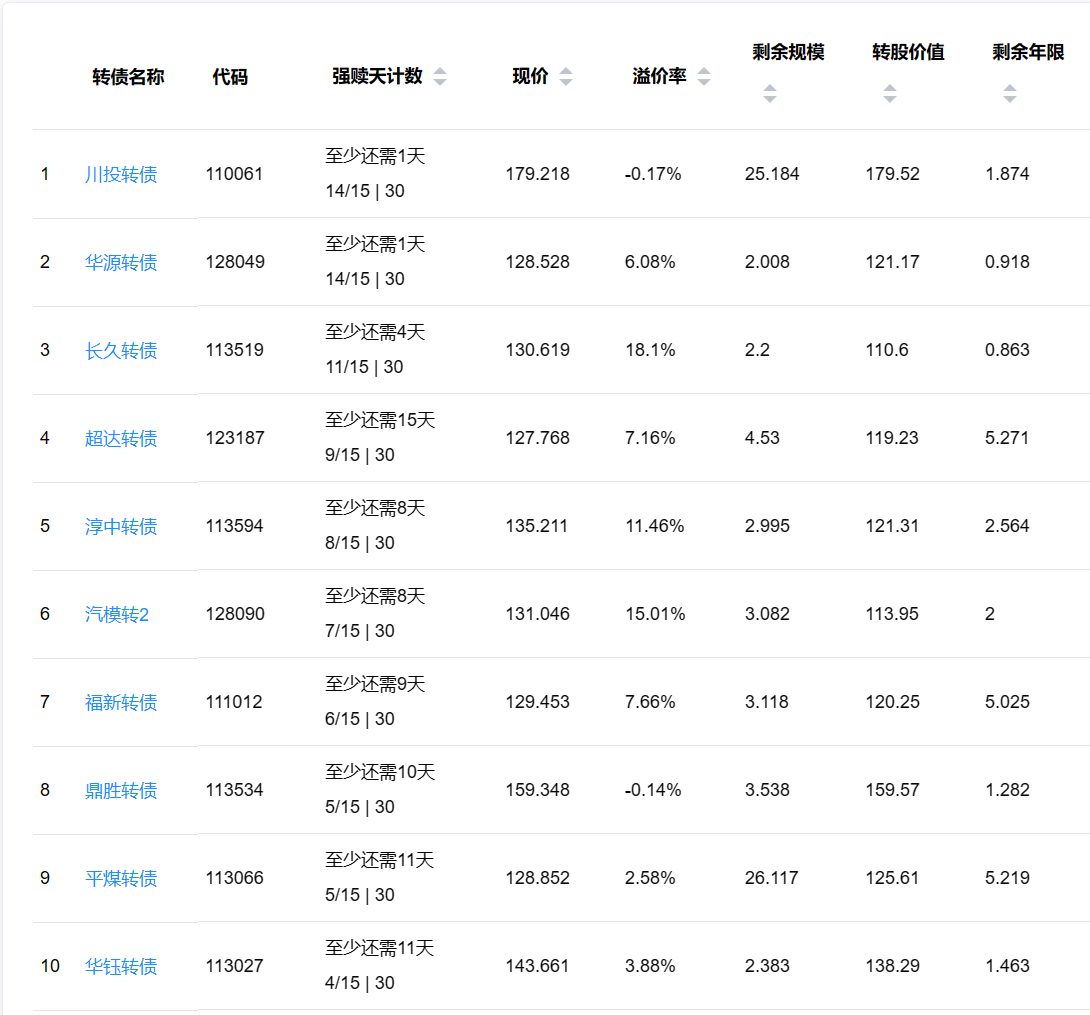 下面这些转债,要注意强赎杀溢价风险,尤其是溢价率在5%以上的。