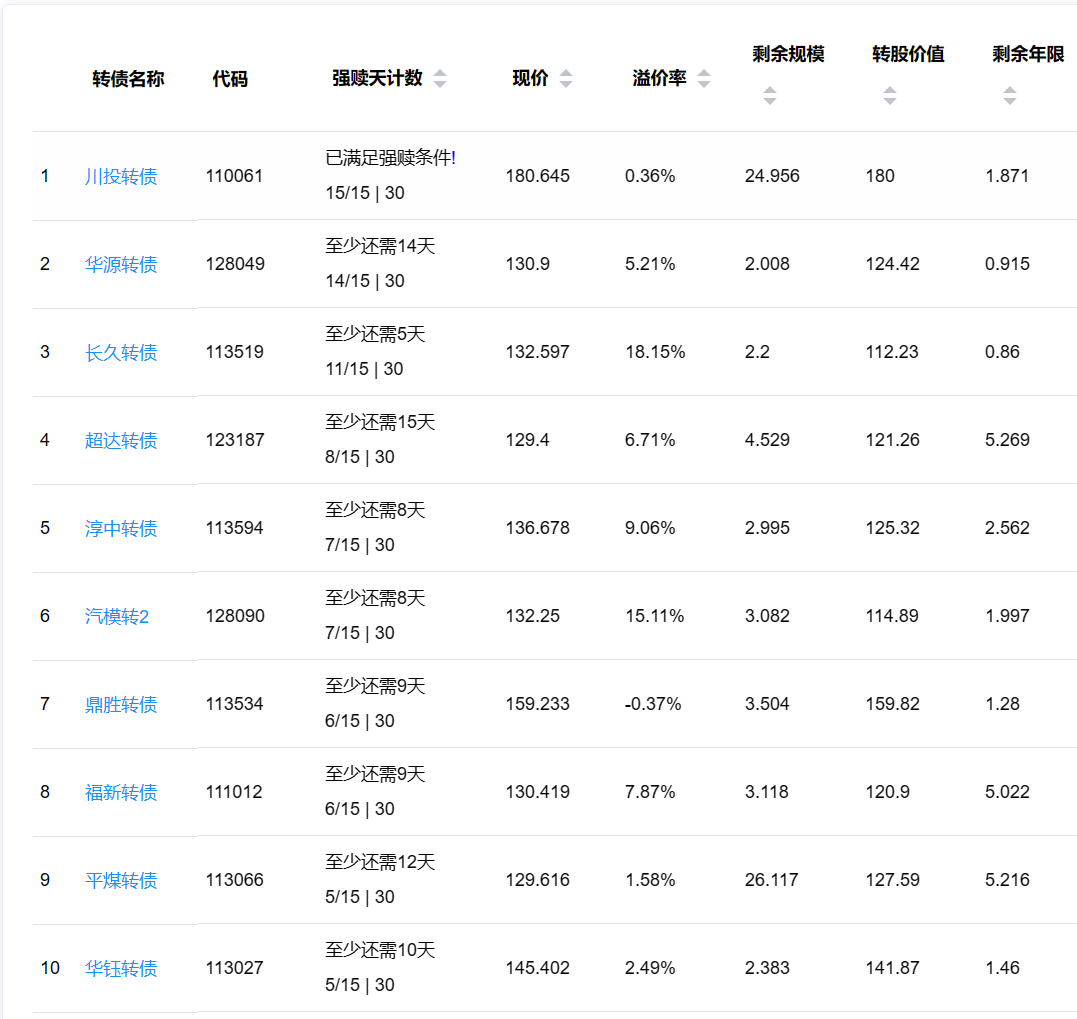 下面这些转债,要注意强赎杀溢价风险,尤其是溢价率在5%以上的。