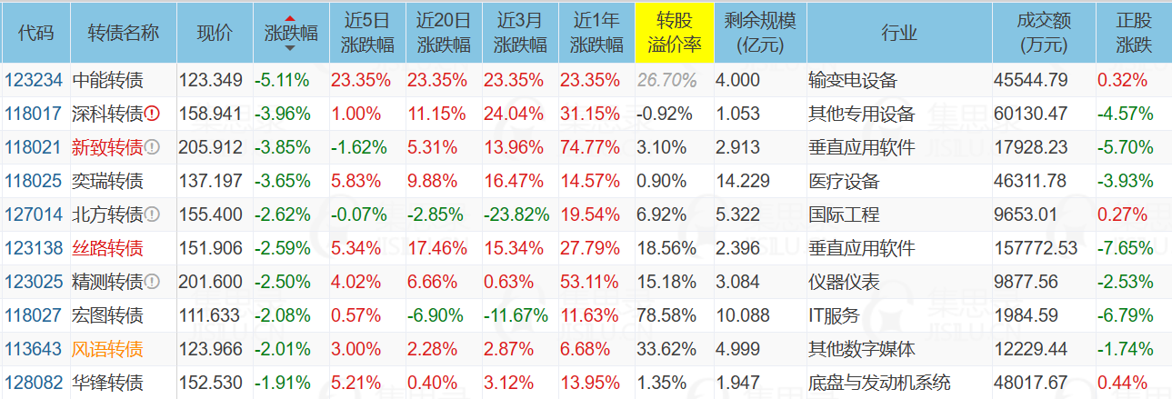 表现后五行业为:医疗服务-2.8%、白酒Ⅱ-2.79%、电池-2.72%、股份制银行Ⅱ-2.58%、乘用车-2.57%。
