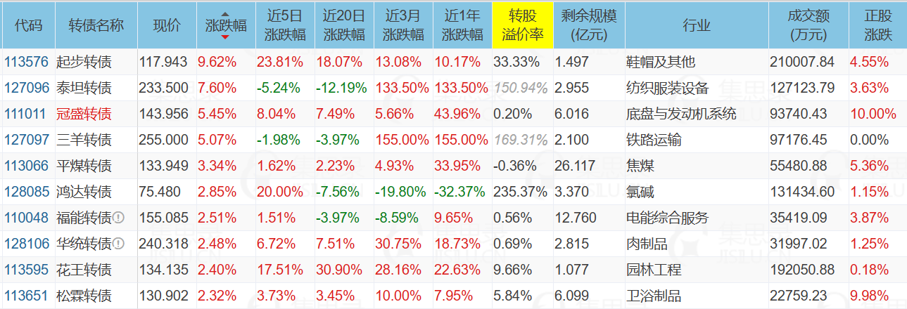 1、涨幅榜前十