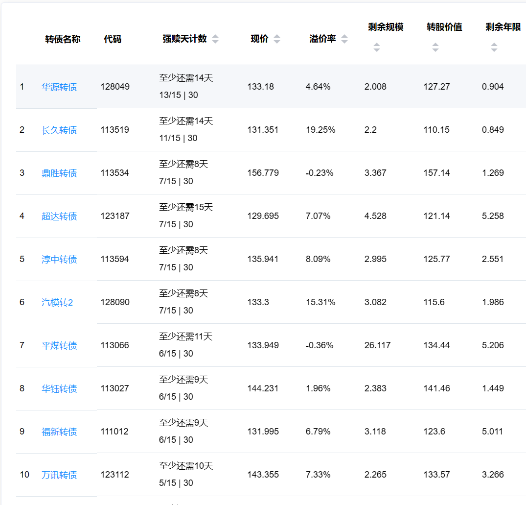 2、即将满足强赎转债