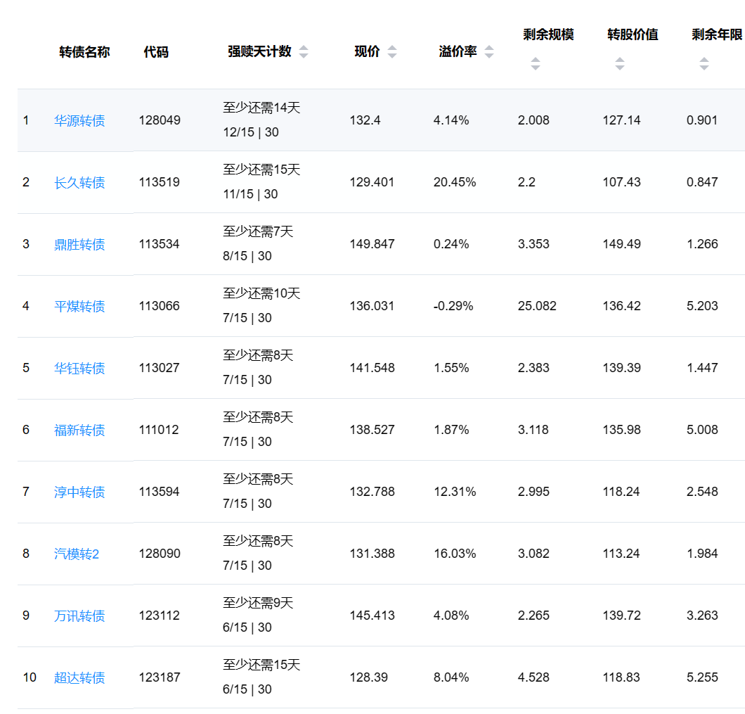 下面这些转债,要注意强赎杀溢价风险,尤其是溢价率在5%以上的。