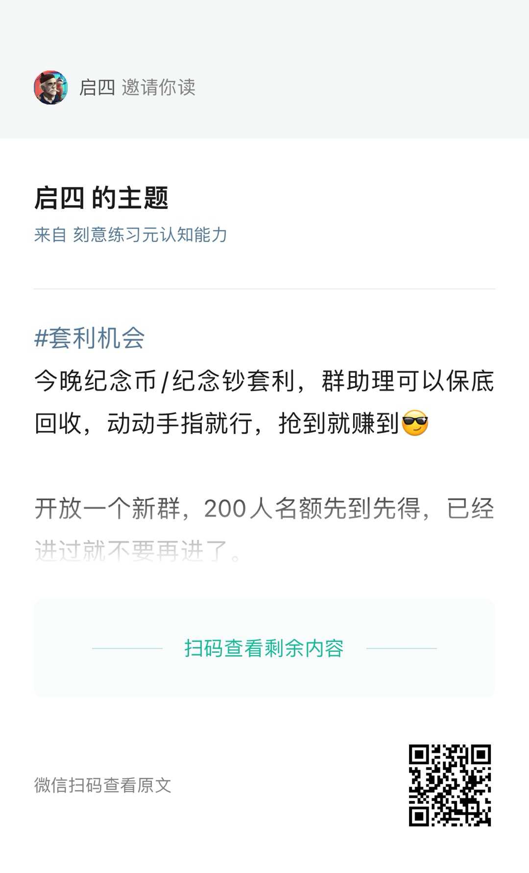 昨晚文章提到的纪念币/纪念钞套利,今晚十点正式开始,动动手指,抢到就赚到。