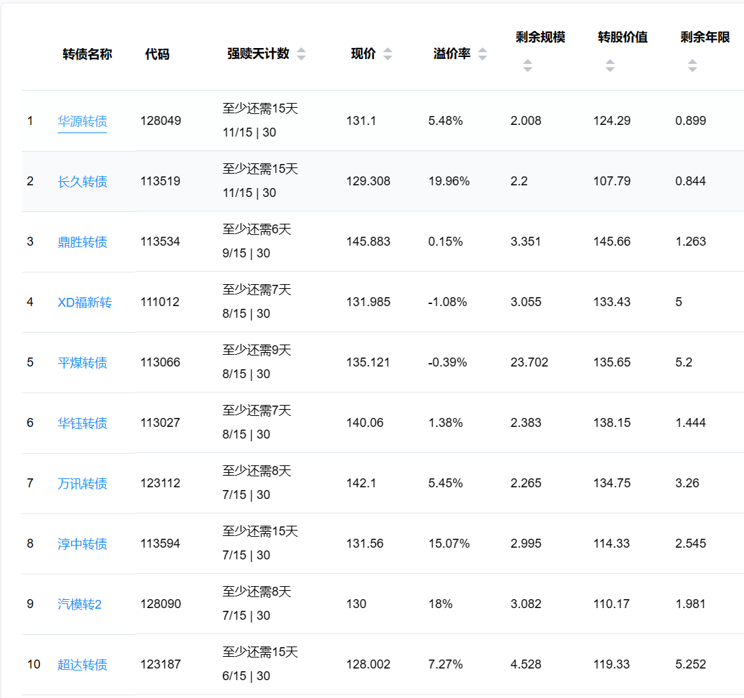 2、即将满足强赎转债