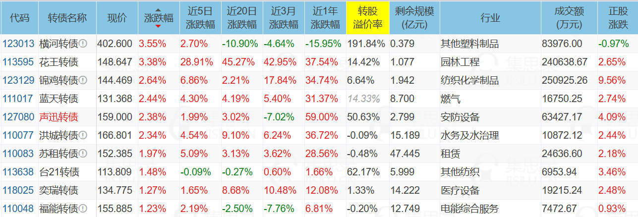 1、涨幅榜前十
