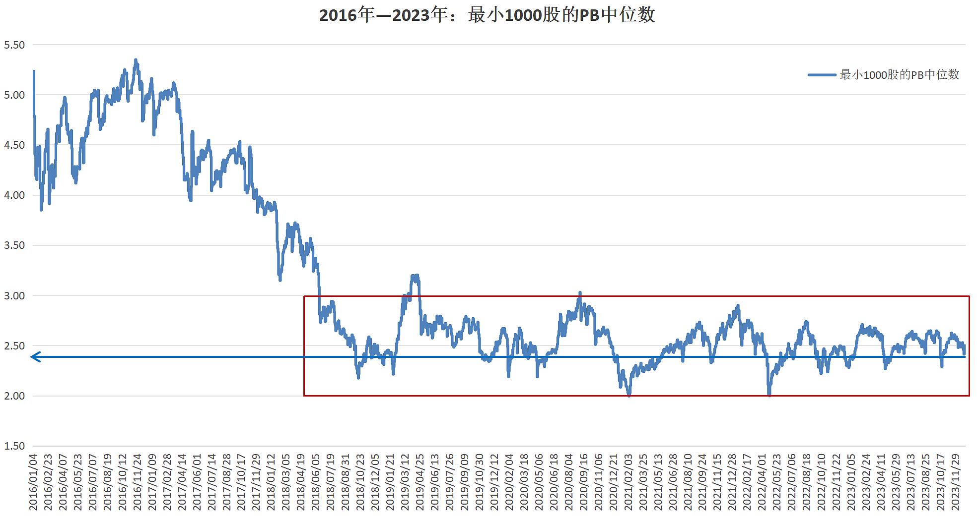 目前大家看到的微盘指数和各类小微盘量化基金,其中的很多收益是来自交易,小微盘的整体性行情可能还没真正到来,参照下面这个估值图,牛市中小市值股的PB会接近翻倍水平。