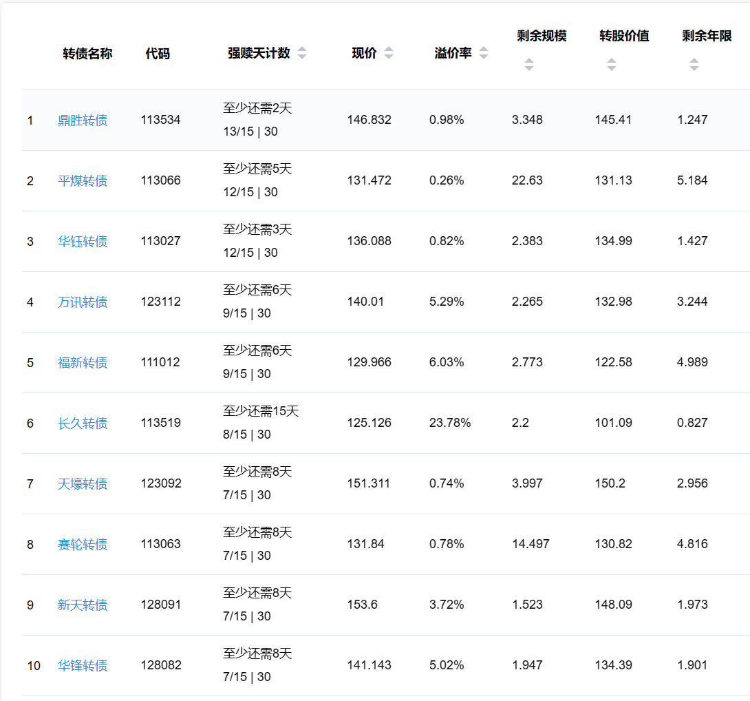2、即将满足强赎转债