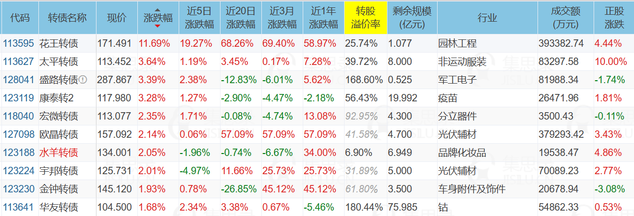 1、涨幅榜前十