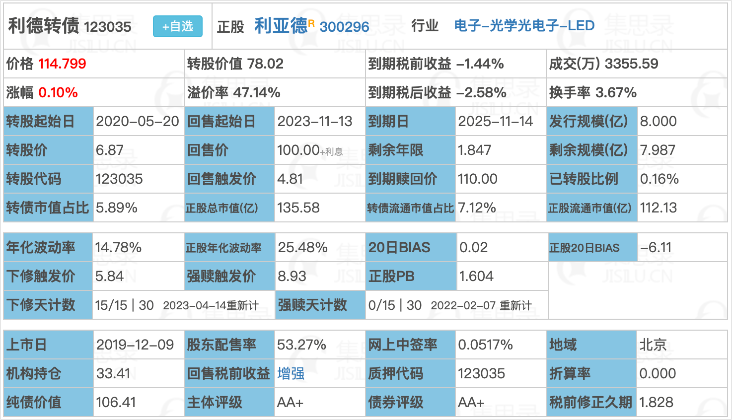 3)利德转债,提议下修。无主动下修记录,目前参数见下图。