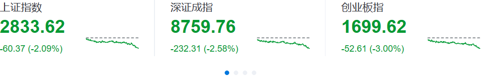 截至收盘,沪指跌2.09%创3年半新低,深成指跌2.58%,创业板指跌3%,北证50指数跌2.78%,沪深两市成交额6375亿元。两市超5000只个股下跌,北向资金净卖出130.56亿元。