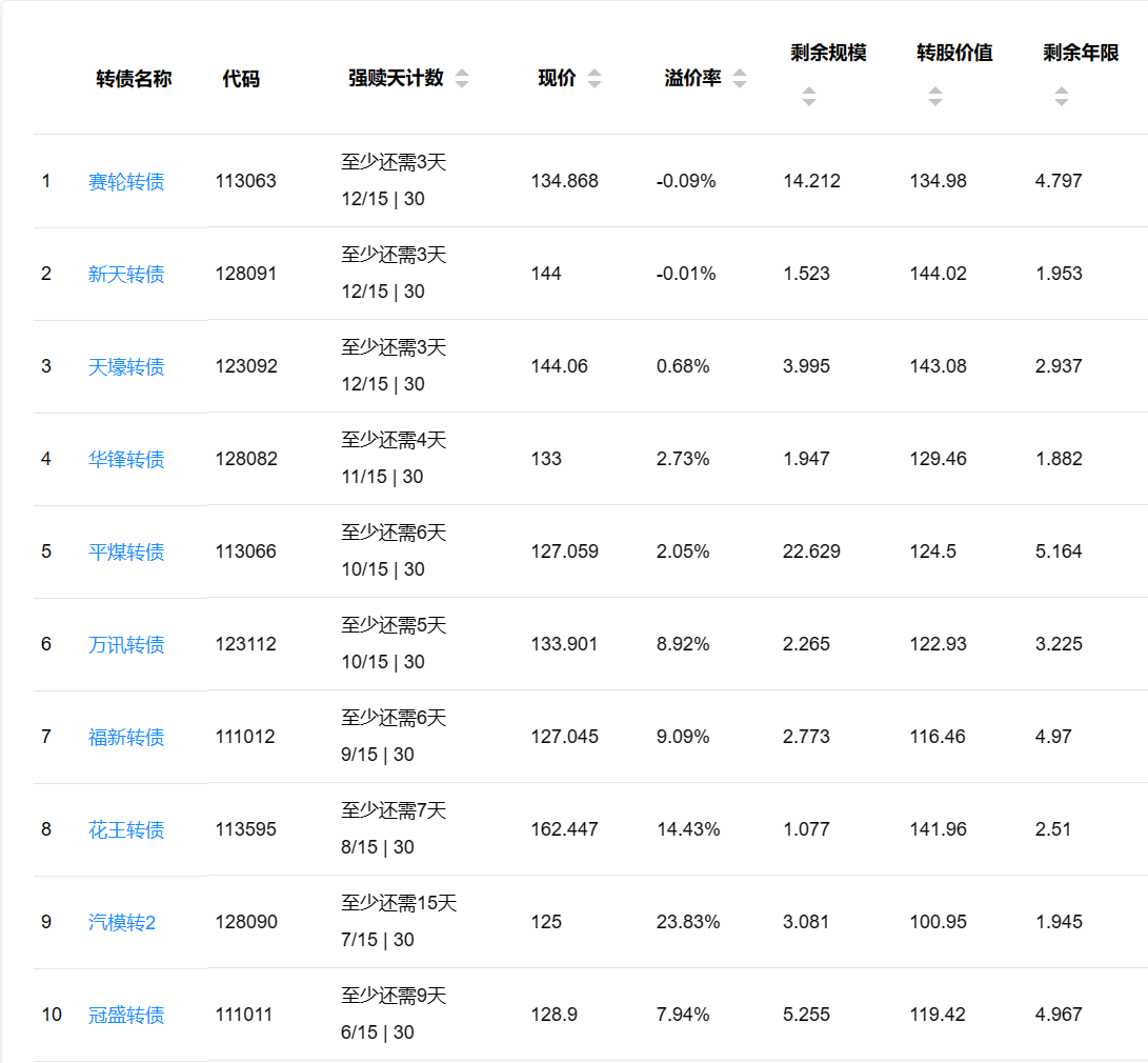 下面这些转债,要注意强赎杀溢价风险,尤其是溢价率在5%以上的。